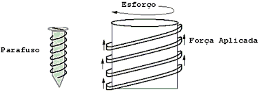 São planos inclinados “enrolados” ao redor de um eixo. Veja no desenho, cada volta do plano corresponde a uma saliência do parafuso.